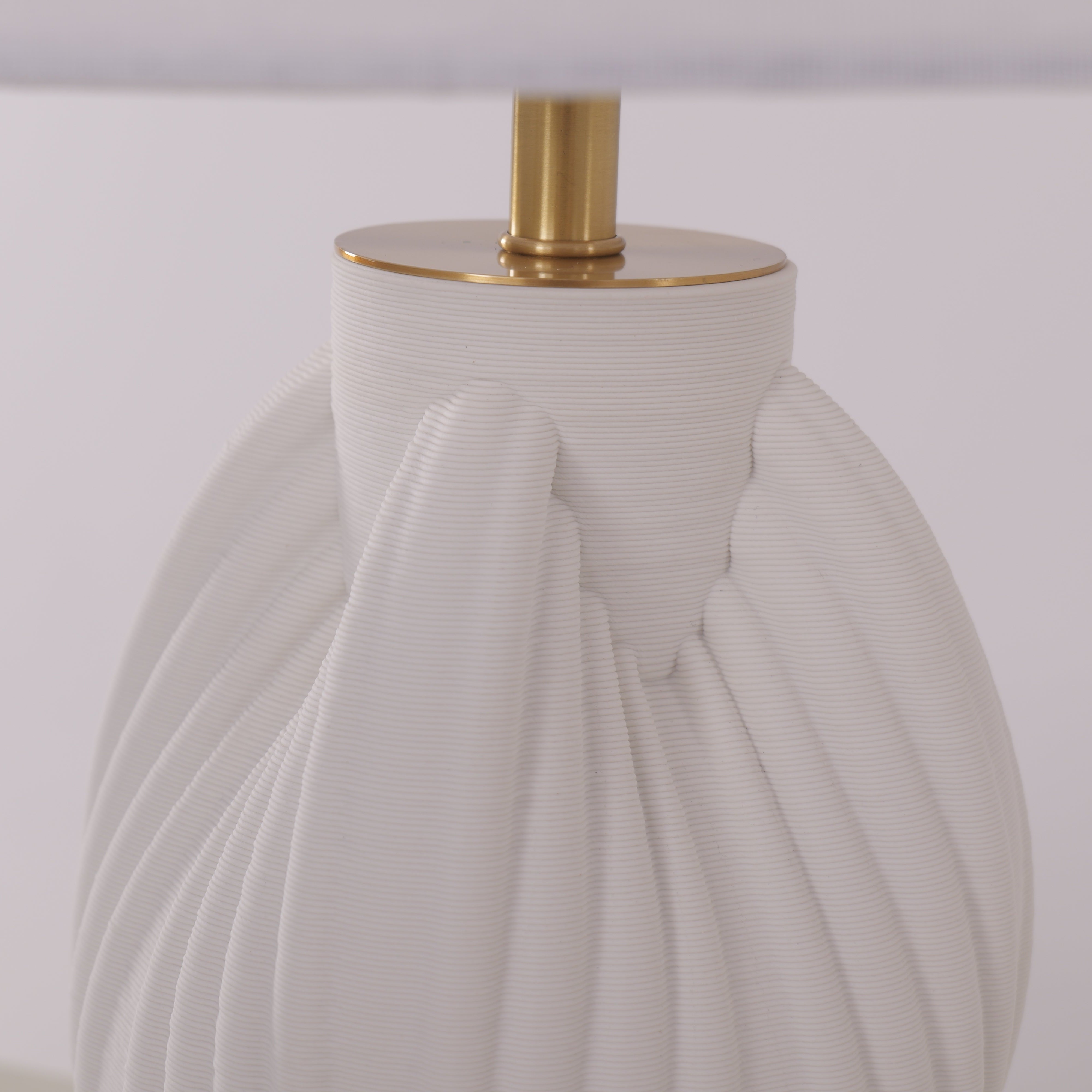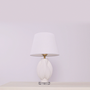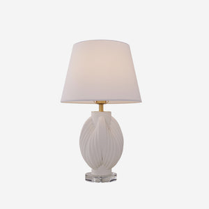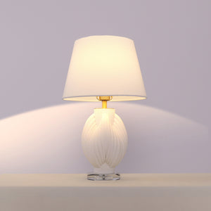 3D Pure White Pod Threaded Ceramic Table Lamp with Fabric Shade