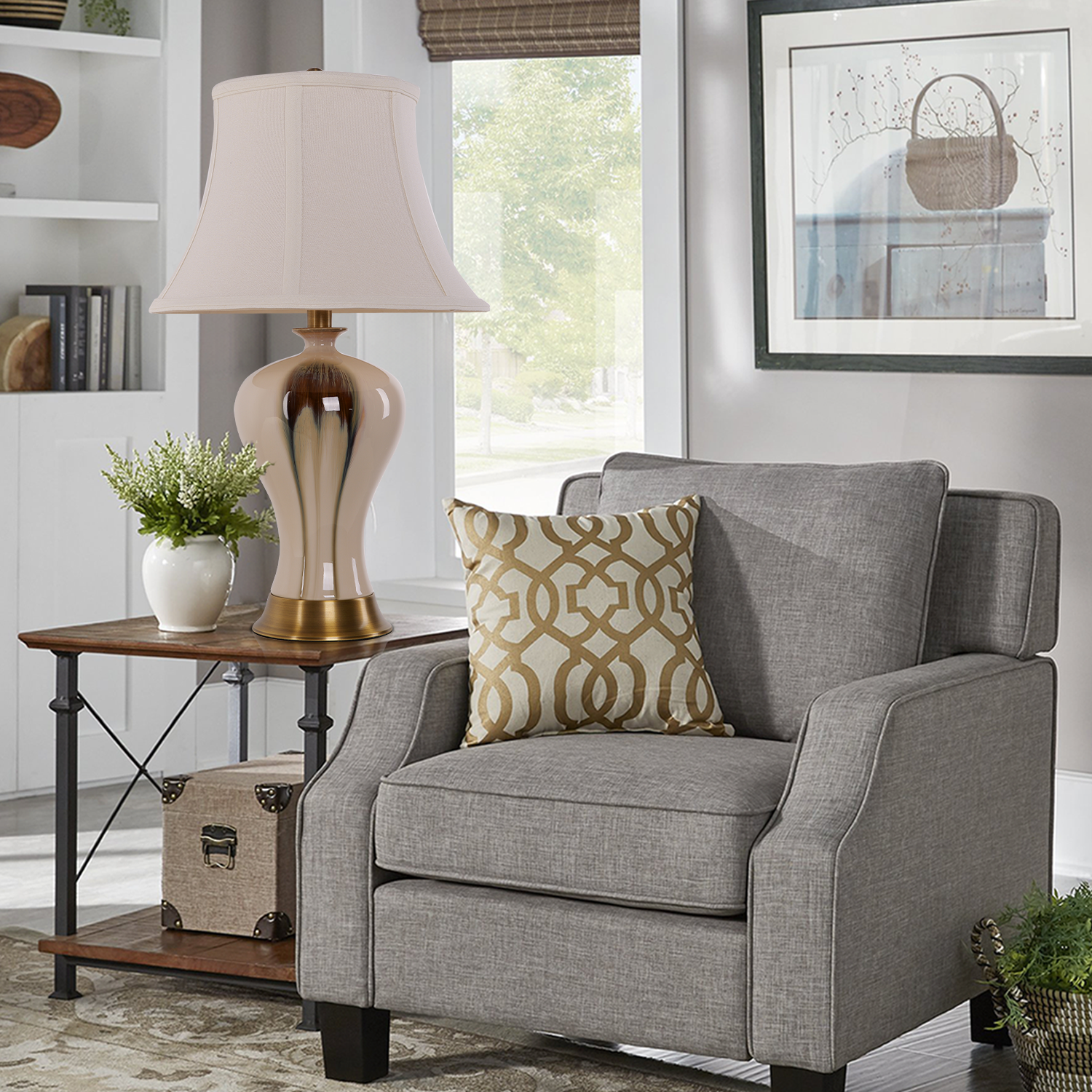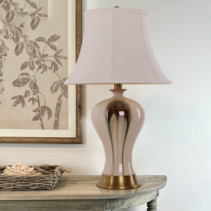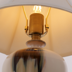 The soft, ambient light pairs perfectly with the exquisite ceramic base to create a cozy and inviting atmosphere. This lamp enhances any living space with a blend of warmth and style, adding both comfort and a touch of sophistication to your home.