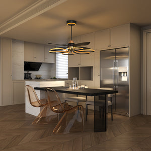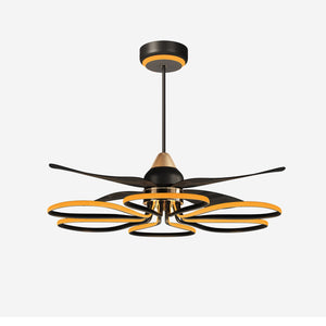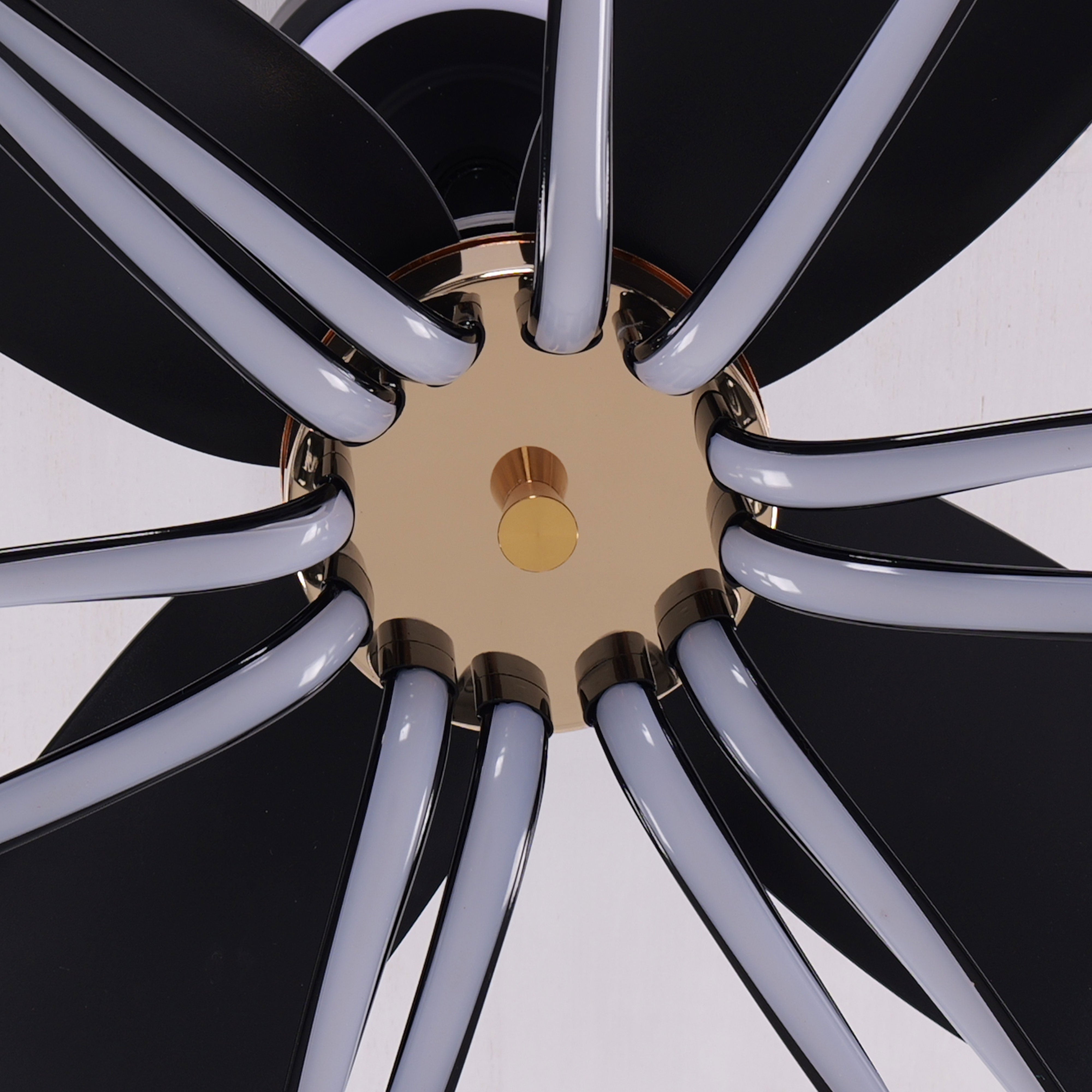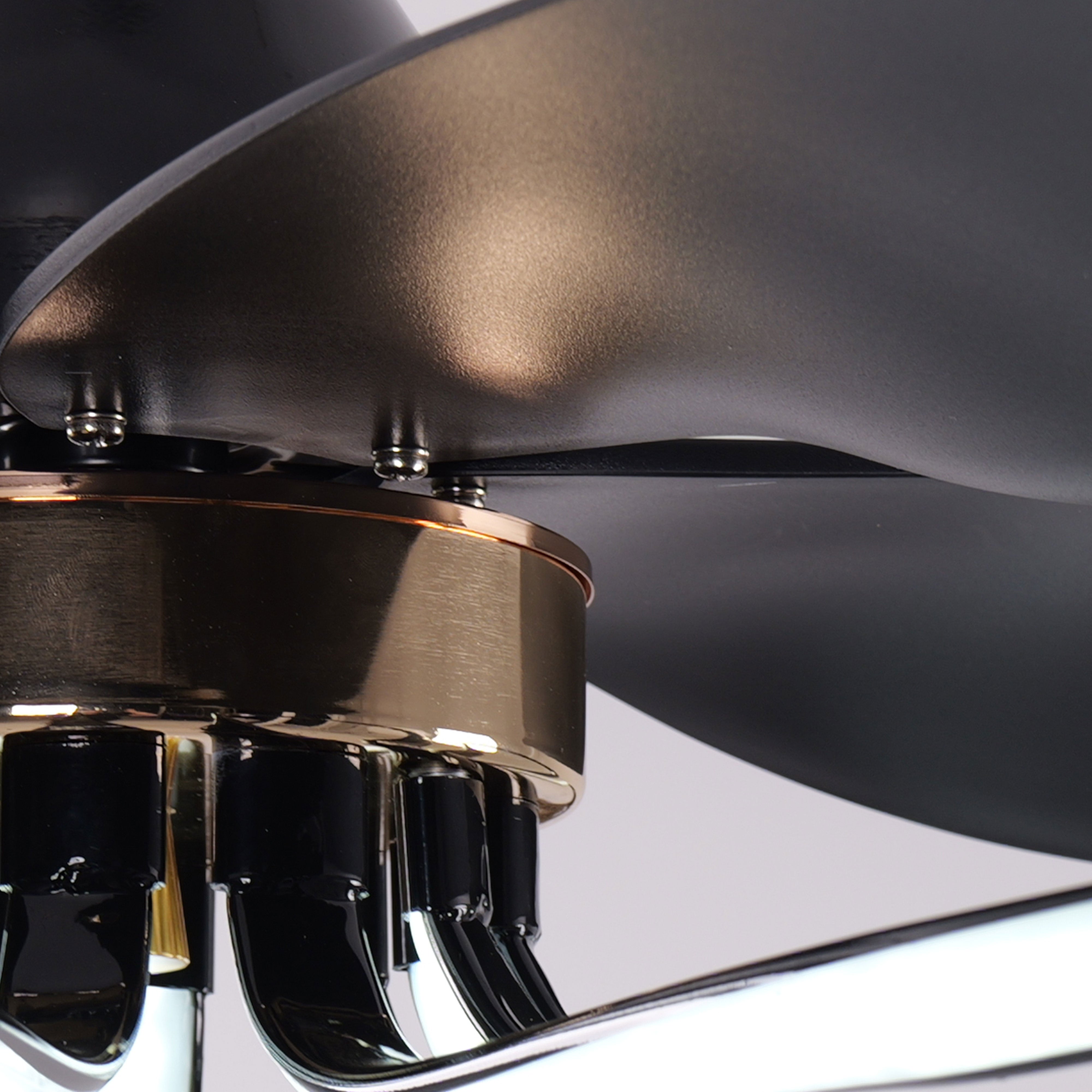 This ceiling fan light is crafted from aluminum, silicone, and copper with a sleek black finish. Its modern design complements a variety of interior styles, adding sophistication to any room. It’s not just functional but a stylish accent in your home.