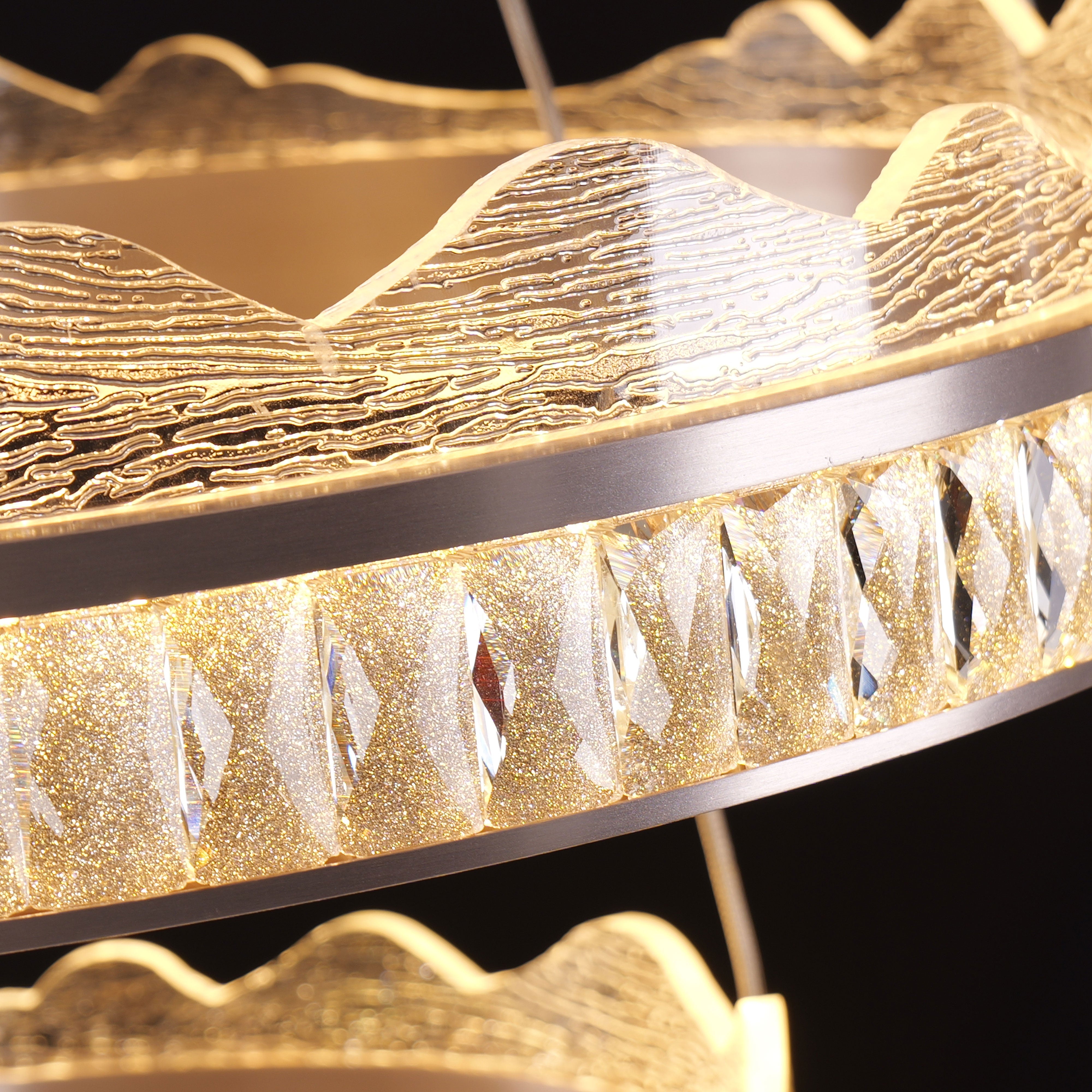 Arvia-Golden Crystal Dual-Ring LED Pendant Light in Modern Aluminum Design