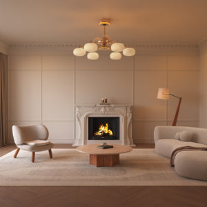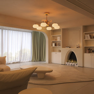This fan light combines a sturdy iron frame with elegant copper accents for a refined look. Durable acrylic adds sleek modernity while keeping the design lightweight. These materials ensure long-lasting performance and style, making it a versatile, sophisticated addition to any space.