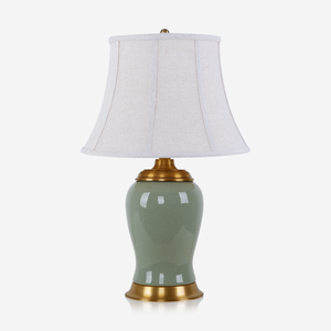 Add timeless charm to your space with this ceramic table lamp, featuring a handcrafted green crackle-glazed base, warm brass accents, and an elegant fabric shade that casts soft ambient light. Perfect as a bedside table lamp or for styling cozy corners in UK homes, it blends vintage style with modern elegance. Ideal for those seeking a large ceramic table lamp or a stylish ceramic lamp base to enhance any room with elegant lighting.